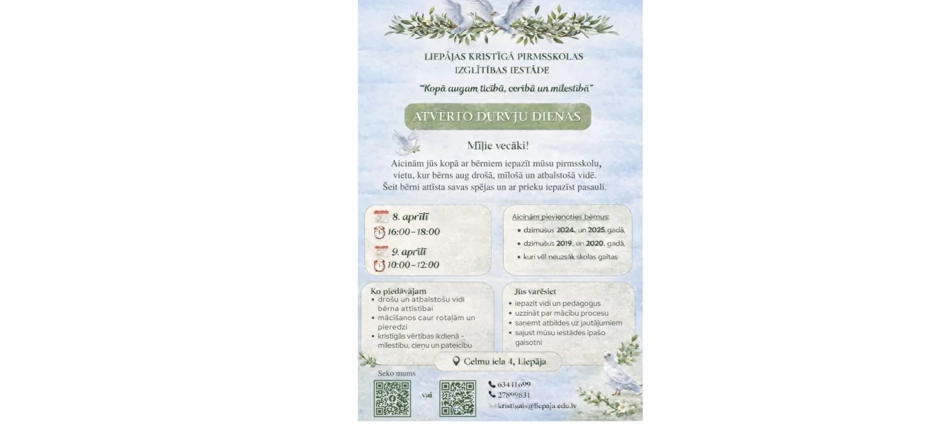 Tiekamies 8. un 9. aprīlī, lai kopā iepazītu mūsu drošo, atbalstošo un zinātkāri veicinošo vidi!